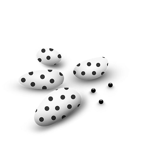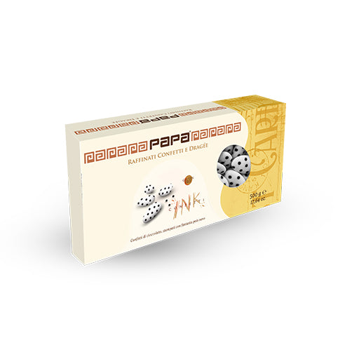 Papa Dolce AmaroConfetti di cioccolato, stampati con fantasia pois nero. Confetti bianconeri con anima di cioccolato fondente morbido 60% con confettura sottile. C...