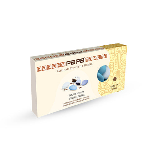 Papa Dolce AmaroConfetti nei toni del celeste. Gusto: doppio cioccolato Confetti con anime di puro cioccolato extra fondente arricchite da un goloso strato di cioc...