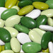 Confetti sfumati con i toni del verde con il cuore al doppio cioccolato: cioccolato fondente ricoperto di cioccolato bianco con confettura sottile. Pezzi per confezione: 95 circa. Certificati Kosher, certificati senza glutine. Solo coloranti e aromi naturali.