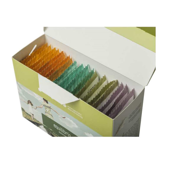 EQUILIBRIO Assortimento di 5 miscele di erbe e fiori in filtro: Abbraccio di Morfeo con Camomilla, Melissa e Verbena; Ape Maya con Camomilla e Miele; Elisir Lianf con Finocchio, Anice e Liquirizia; Orange Masai Rooibos e Arancia; Fortuna dei Maya con Cacao e Zenzero.