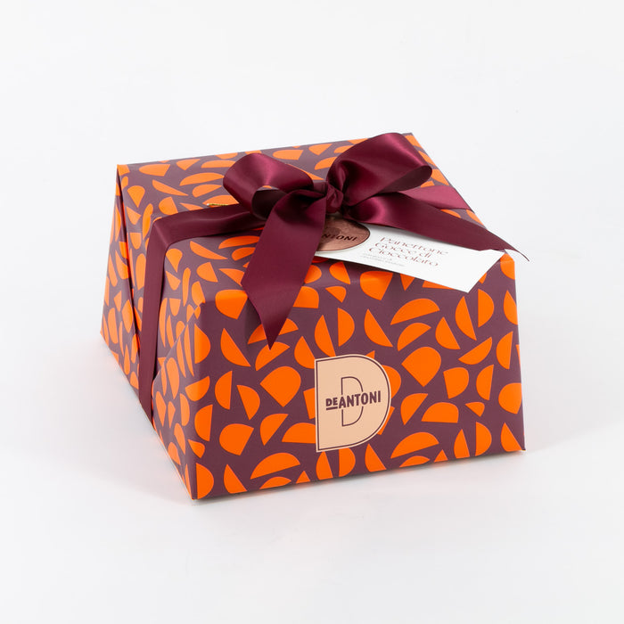 - Un morbido panettone lievitato naturalmente con un impasto soffice e profumato arricchito da delicate e golose gocce di purissimo cioccolato fondente.