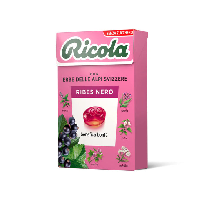 • RICOLA RIBES NERO SENZA ZUCCHERO Dall’inconfondibile gusto alle erbe questa caramella è apprezzata da tempo per la sua balsamicità